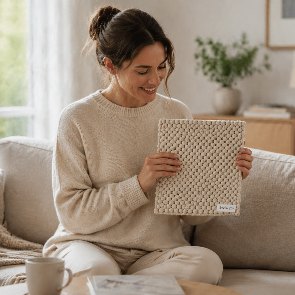 Bestellen Sie ein 30 × 30 cm Handwebmuster und prüfen Sie Material, Haptik und Farbwirkung in Ruhe.